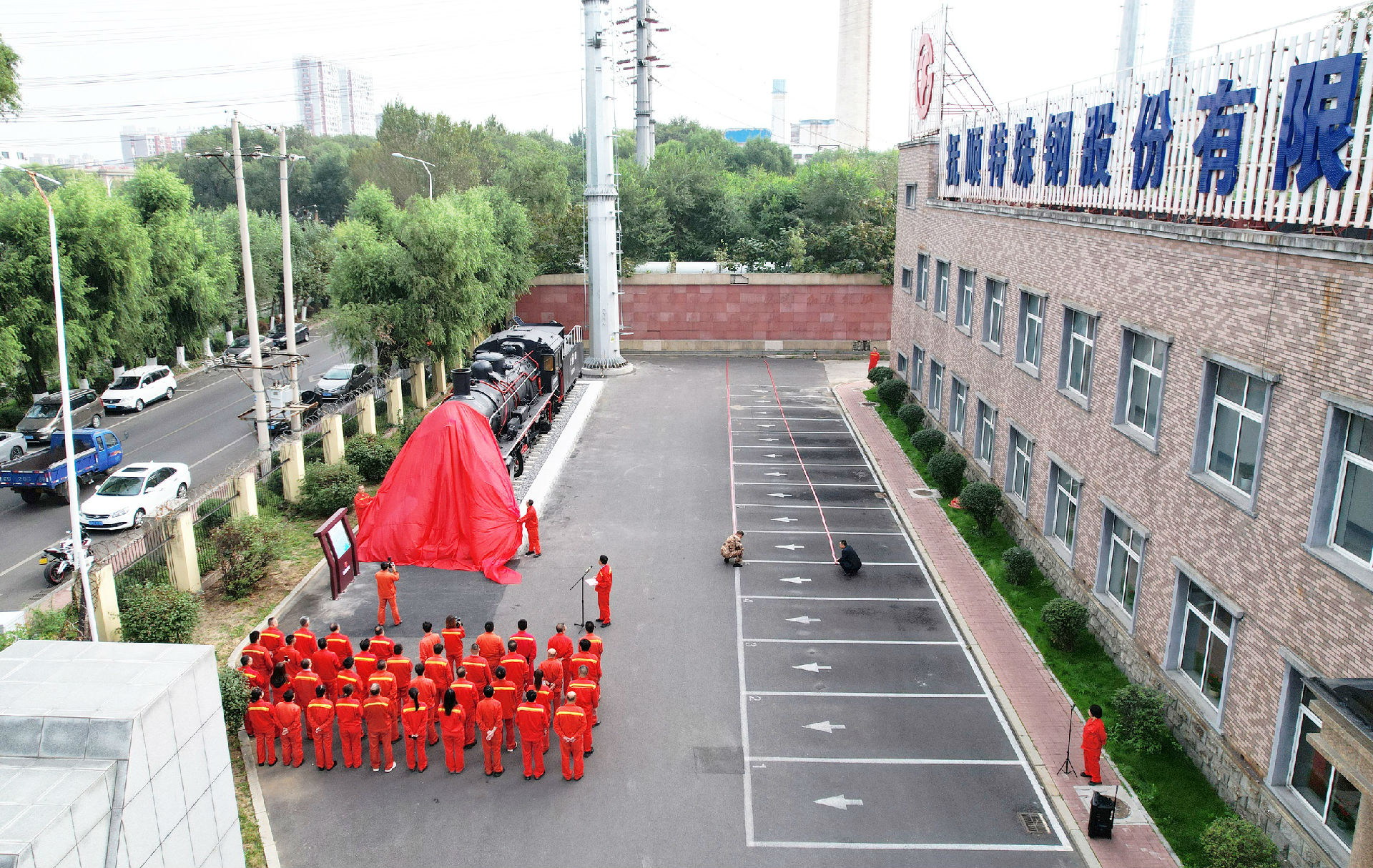 祁勇在揭幕儀式上發(fā)表了熱情洋溢的講話。他指出,在喜迎新中國成立76周年華誕,慶祝沙鋼集團(tuán)成立50周年之際,我們懷著無比崇敬與振奮的心情,共同迎來撫順特鋼蒸汽機(jī)車文創(chuàng)項(xiàng)目落成儀式的重要時(shí)刻。這既是對企業(yè)歷史的深情回望,更是對未來征程的莊嚴(yán)宣誓。他強(qiáng)調(diào)指出,今年是沙鋼集團(tuán)成立50周年,這臺(tái)蒸汽機(jī)車出廠于1975年與沙鋼“同齡”,共同傳承了50年的發(fā)展。在“1050”的編號中,“50”這個(gè)數(shù)字又與沙鋼50周年形成跨越時(shí)空的呼應(yīng),傳遞著“50載同行”的深刻寓意。其50年的歷史脈絡(luò)與沙鋼的發(fā)展年輪交相輝映,無論是過去運(yùn)輸材料時(shí)的堅(jiān)韌,還是如今作為精神符號的厚重,這臺(tái)蒸汽機(jī)車始終在訴說:它代表的“火車頭精神”,是直面挑戰(zhàn)時(shí)的“牽引力”,是跨越難關(guān)時(shí)的“加速度”,是守正創(chuàng)新時(shí)的“精準(zhǔn)度”。我們?yōu)檫@臺(tái)蒸汽機(jī)車文創(chuàng)項(xiàng)目舉行落成儀式,不僅是為了銘記一段工業(yè)記憶,更是為了讓“火車頭精神”在新時(shí)代的撫順特鋼人心中生根發(fā)芽。當(dāng)前,撫順特鋼正向著“中國第一特冶”的目標(biāo)穩(wěn)步邁進(jìn),這正是“火車頭精神”在新時(shí)代的延續(xù)——以技術(shù)升級為“蒸汽(爭氣)”,以創(chuàng)新研發(fā)為“軌道”,以使命擔(dān)當(dāng)為“方向”,推動(dòng)撫順特鋼在國內(nèi)特鋼行業(yè)持續(xù)領(lǐng)跑。希望這臺(tái)蒸汽機(jī)車能成為我們的“精神燈塔”,讓每一位員工在駐足凝視時(shí),都凝聚著“精益求精、追求卓越”的精神;都能感受到“腳踏實(shí)地、勇毅前行”的力量。讓我們以“火車頭精神”為引領(lǐng),在沙鋼集團(tuán)成立50周年的新起點(diǎn)上,共同書寫撫順特鋼更加輝煌的篇章,衷心祝愿撫順特鋼在新時(shí)代的征程上,如這臺(tái)蒸汽機(jī)車般,動(dòng)力澎湃、一往無前。